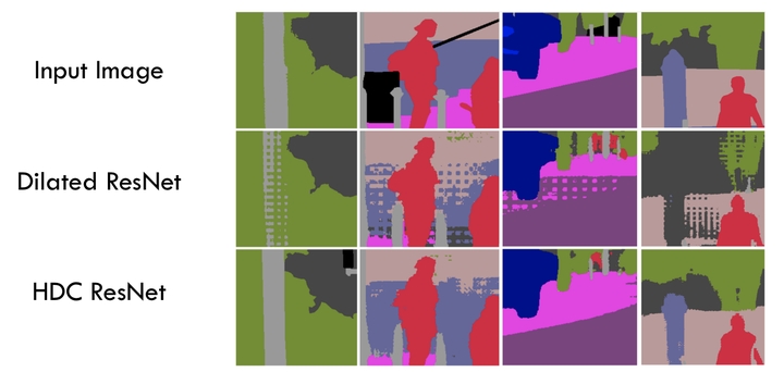 叠加卷积的dilation rate不能有大于1的公约数, 如[2, 4, 6]不是可行的三层卷积, 会出现gridding effect.